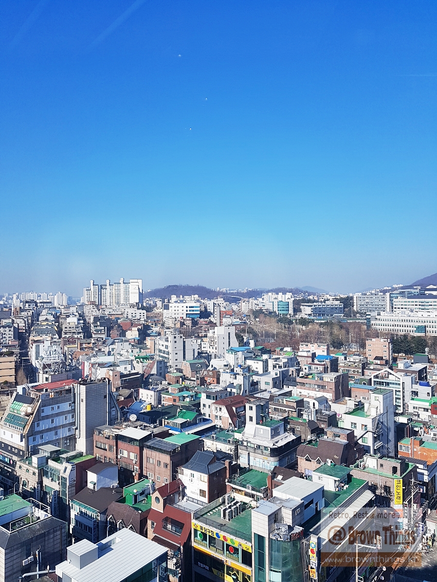 12층 고도에서 내려다 볼 수 있는 신촌의 전망.