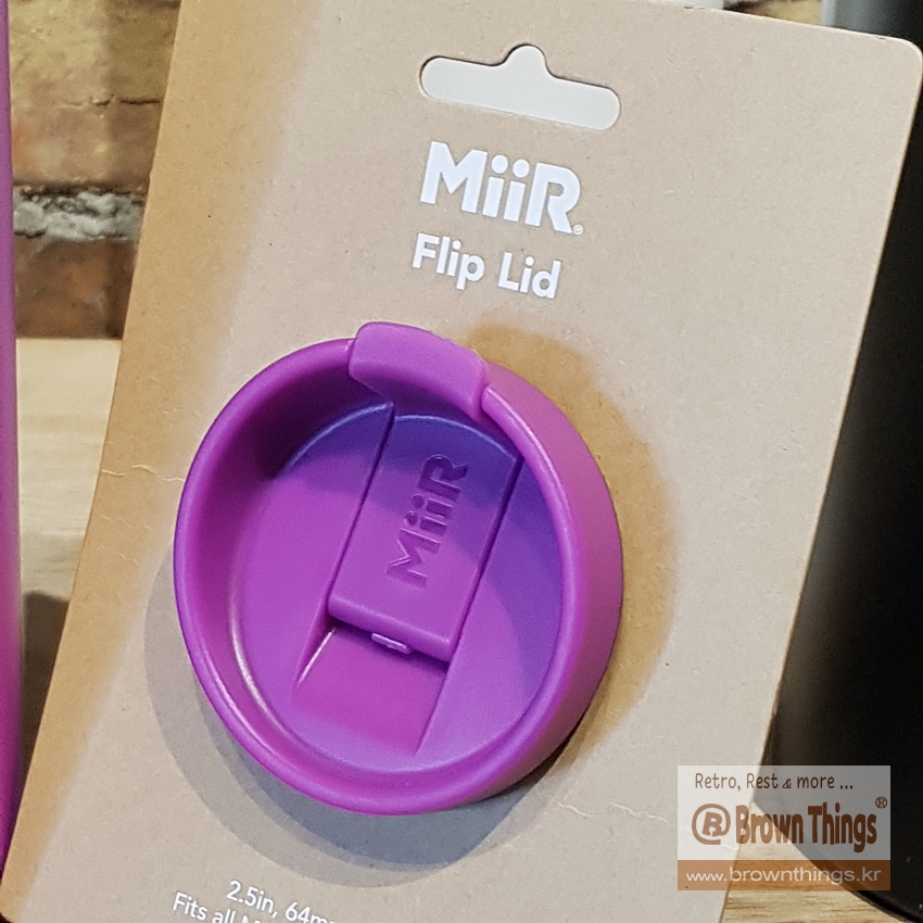 텀블러 진열대에서도 여러 색상의 텀블러들 사이에서 군계일학처럼 돋보이는 보라색의 [테라로사 x 미르 텀블러].