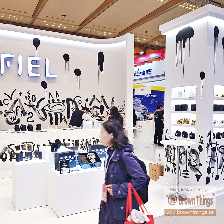 해마다 선택하는 색깔은 달라도 큰 줄기에서 벗어나지 않고 맥락 있게 부스를 디자인하고 있는 커피휘엘.