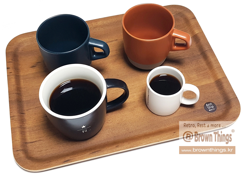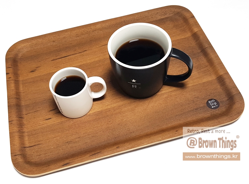 • 인텔리젠시아(Intelligentsia) 커피 명동 매장의 쟁반 _ 킨토 KINTO 논슬립 티크나무 우드 트레이 | book.brownthings.kr/29