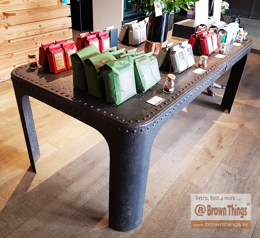 테라로사의 시그니처이며 특화 오브제: 앤틱 무쇠 탁자.