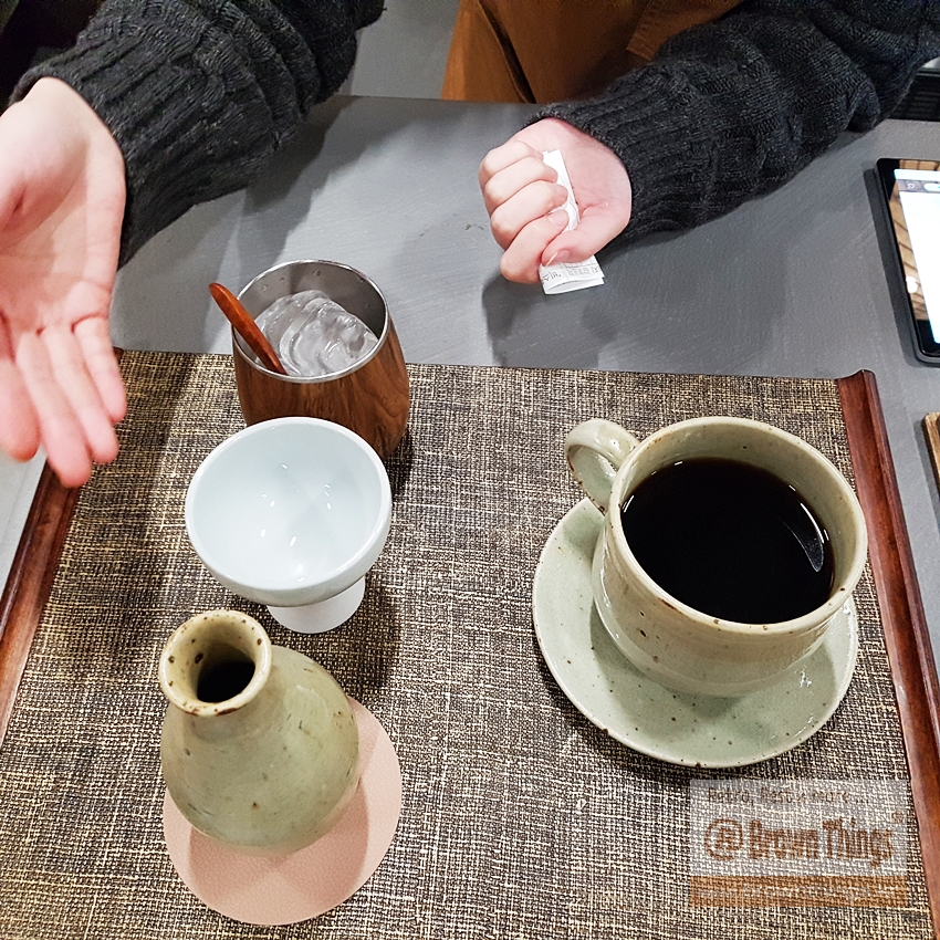 '흑단' 콜드브루의 제맛을 느낄 수 있는 음용 방식은 호리병에 담아서 증류 소주처럼 술잔에 조금씩 따라 마시기.