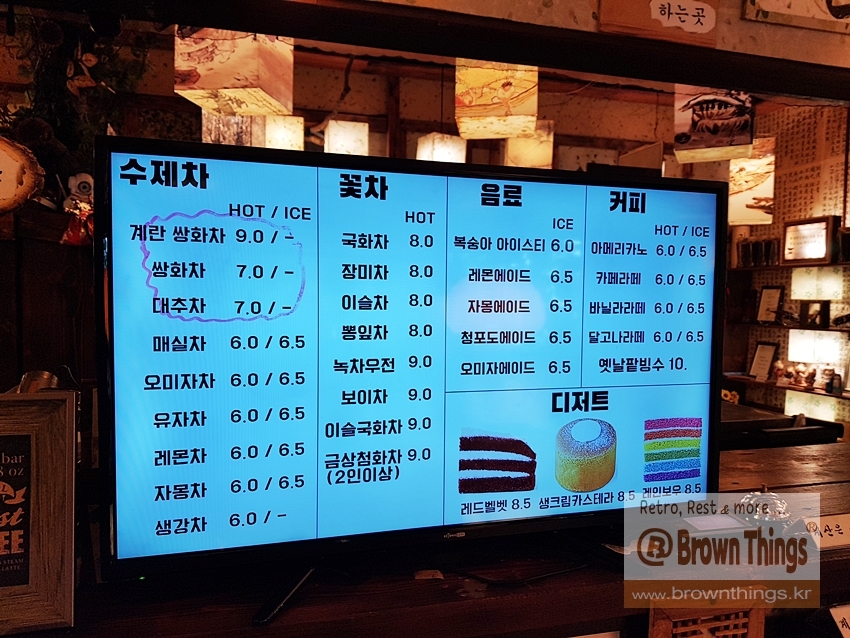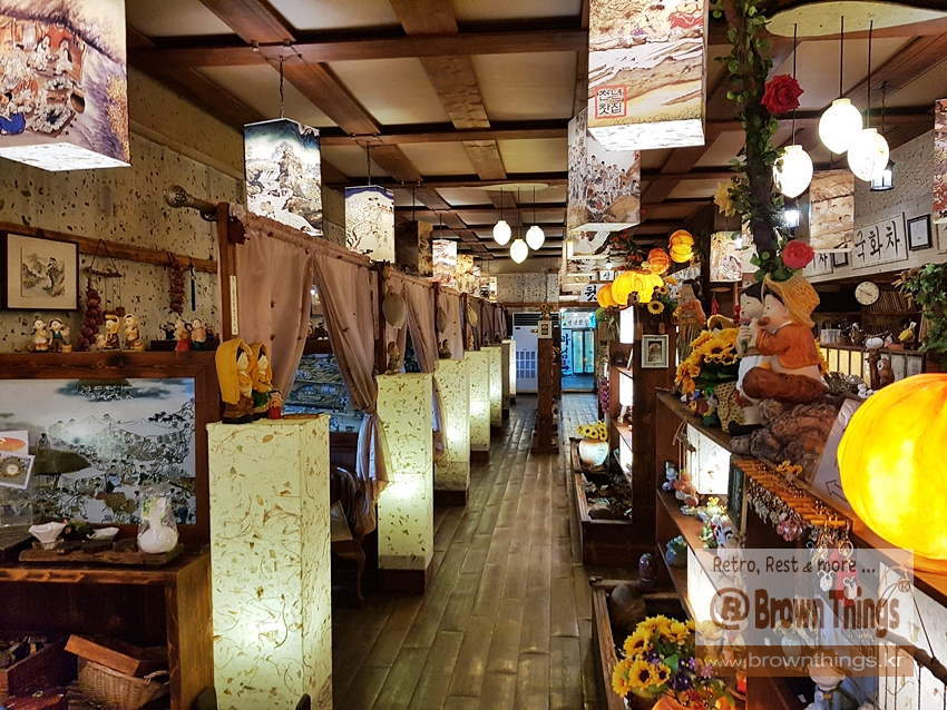공간 디자인은 전형적인 [전통찻집] 모습인데, 여러모로 인사동 찻집 '지대방'과 매우 비슷한 정서.