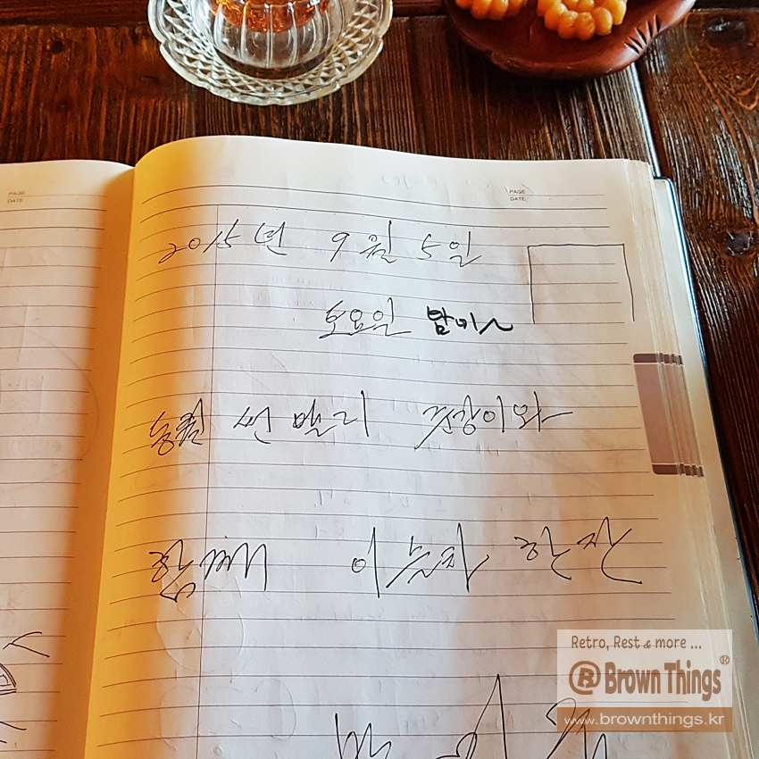 천년찻집의 공간 분위기, 방명록에서 지대방이 지닌 정서와 감성을 느낄 수 있어서 이루 말할 수 없는 반가움과 푸근함.