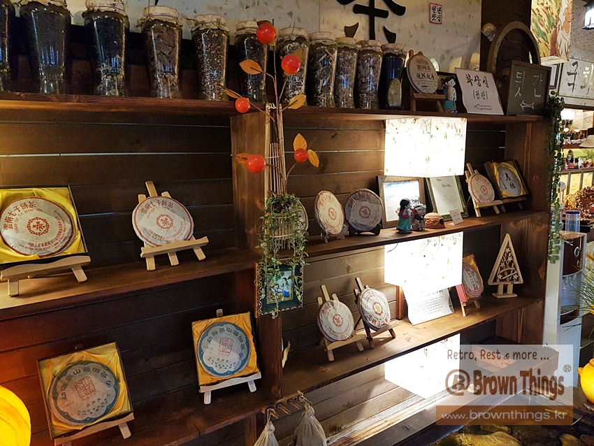 일견, 원목으로 공간을 꾸미고 그냥 민속과 전통 소품들로 꾸며 놓은 흔한 전통찻집으로 보이지만,
