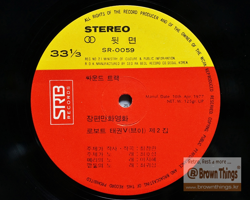 로보트 태권V 제2탄 우주작전 싸운드 트랙 LP 뒷면
