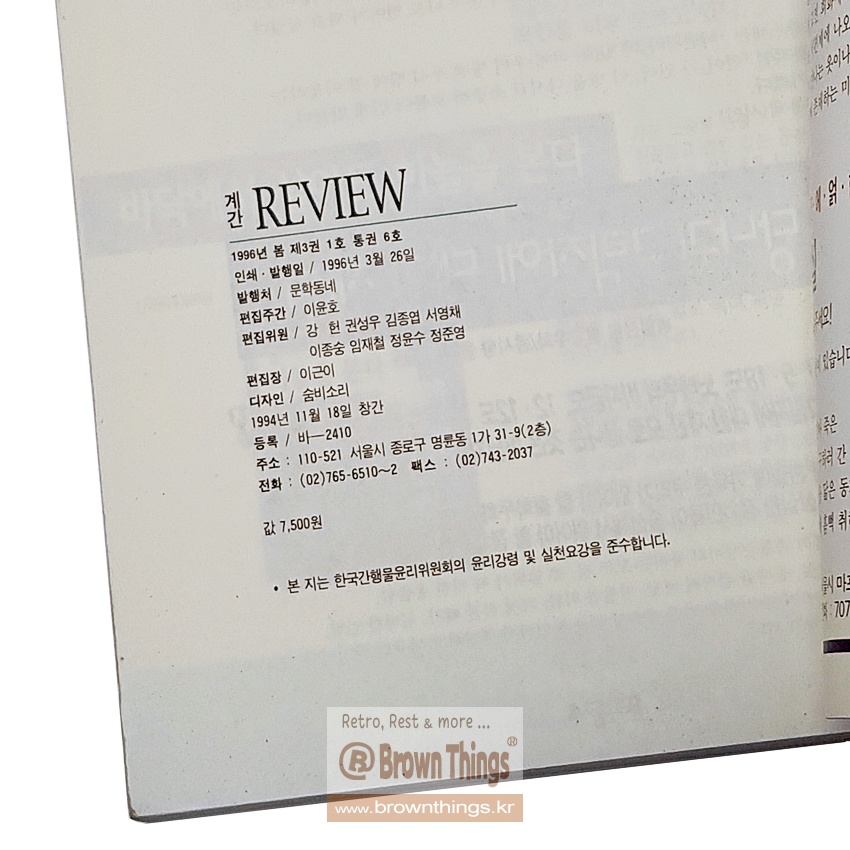 문학동네에서 펴낸 대중문화 비평 계간지 계간 REVIEW(리뷰) 1996년 봄 (제6호) 표지모델 소설가 윤대녕.