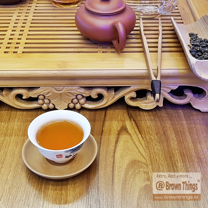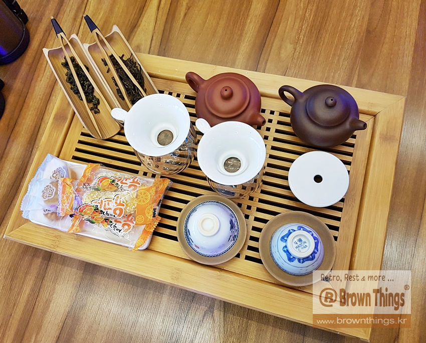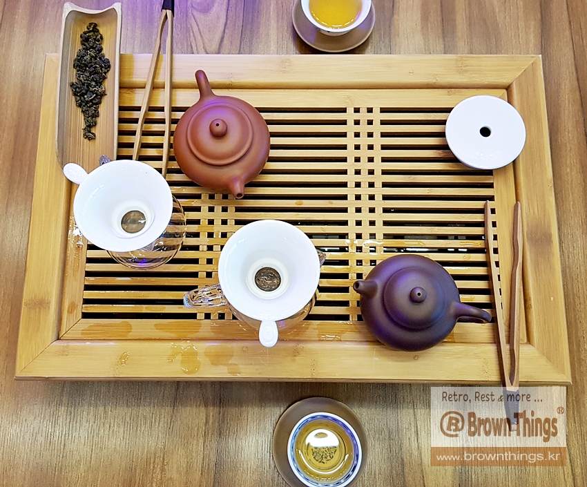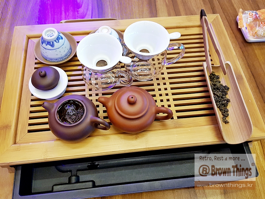 명선다원 바깥 공간은 보이차, 우롱차, 자사호, 다완, 시음하는 차방.