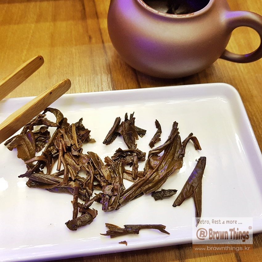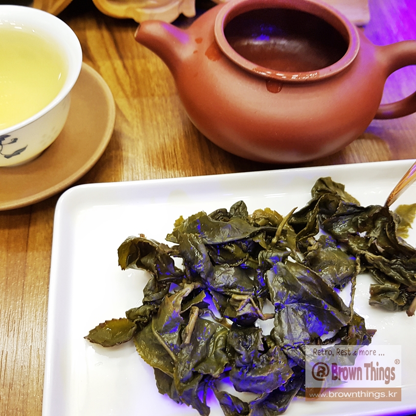 공간 요소(차방 운영 - 보이차, 우롱차, 다기 판매), 차 메뉴, 찻자리, 다기 세팅 전반 요소에서 잎차에 충실한 찻집.