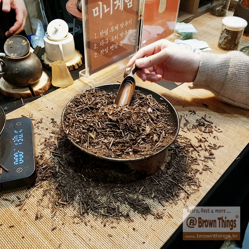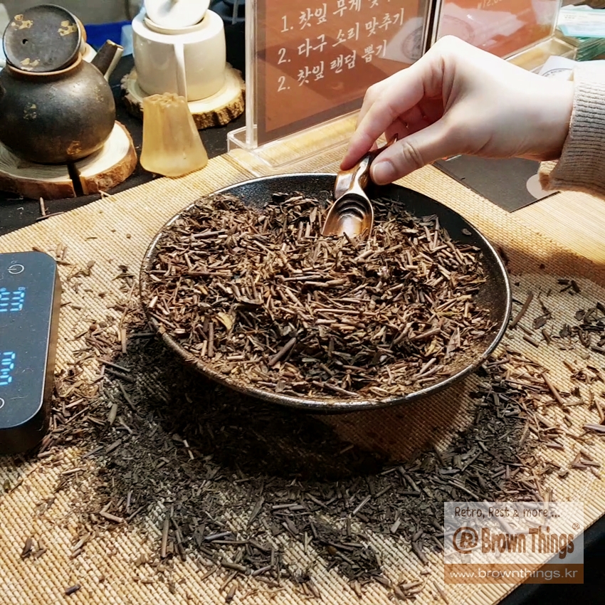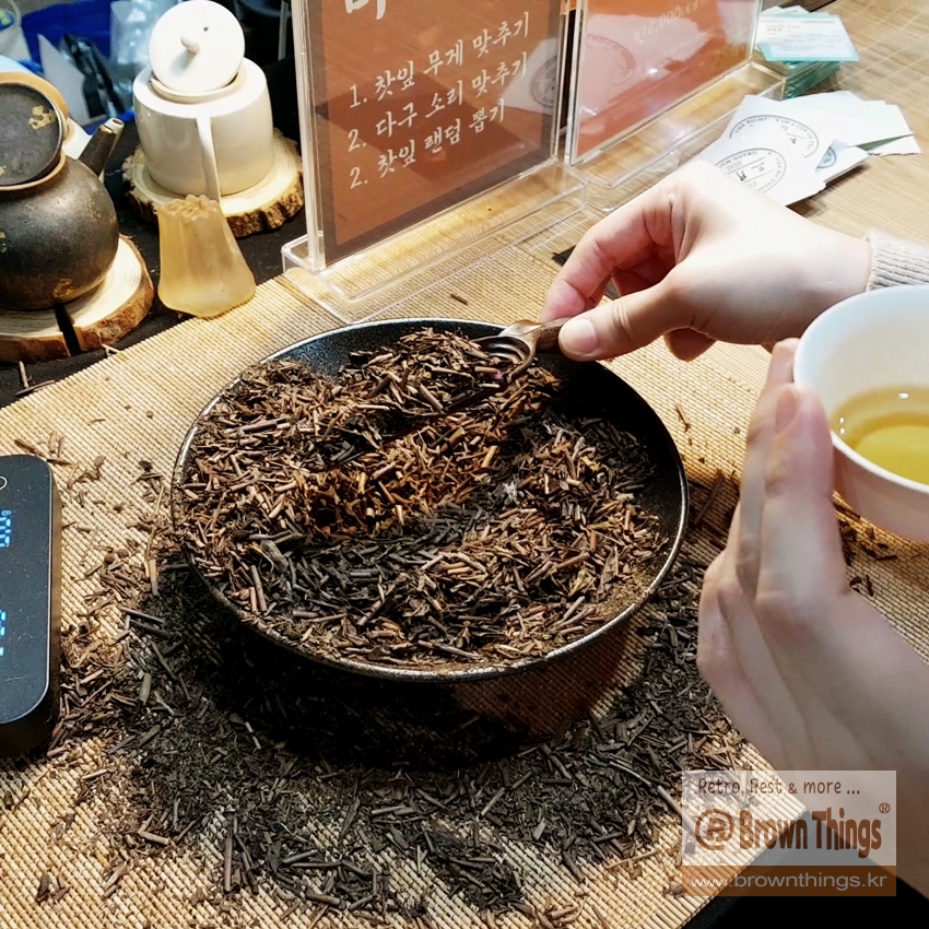 차칙(찻숟가락)으로 일본 호지차 찻잎을 떠서 3g(±0.2g 오차 인정) 무게를 맞추면 대만 우롱차, 중국 홍차 중에서 1봉 증정.