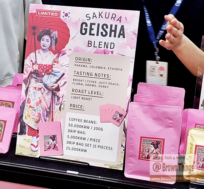핑크색 커피 사쿠라 게이샤 블렌드(SAKURA GEISHA BLEND)와 함께 참가한 일본 오사카 카페 리노 앤드 아이아 커피.