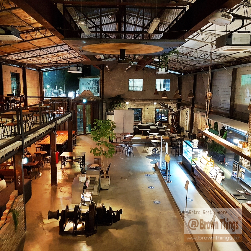 • [녹슨 수집소] 군산 인더스트리얼 카페 올드브릭의 천장 H빔 건축 구조물, 공장 조명 전등갓 | book.brownthings.kr/17