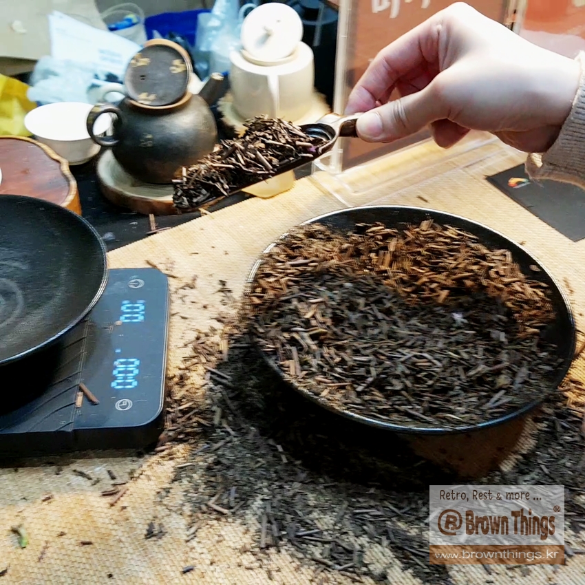 겉모습으로는 묵직해 보이는 실제로는 볏짚처럼 가벼운 일본 호지차 찻잎.