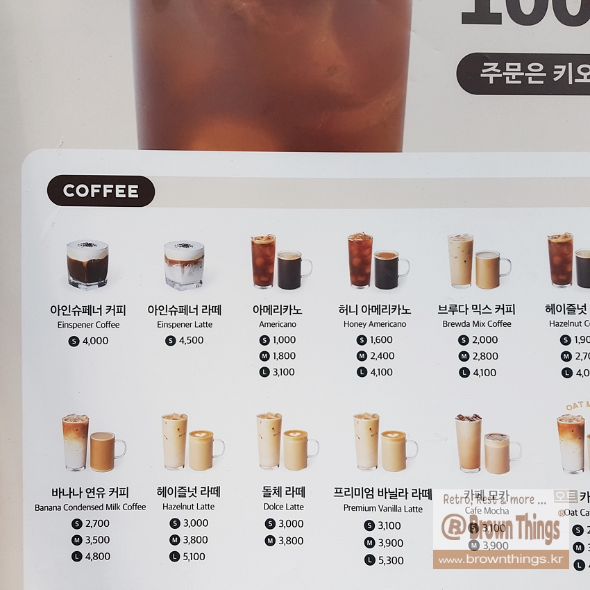 브루다 Brewda 브랜드 시작했던 2019년부터 아메리카노 S는 1,000원 / M 1,800원 L 3,100원