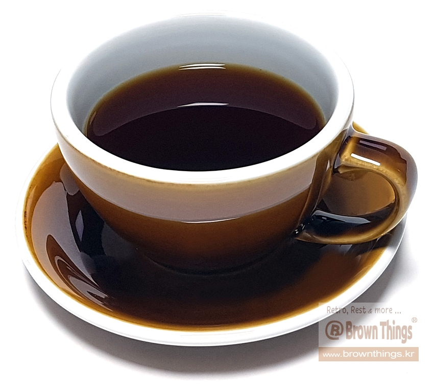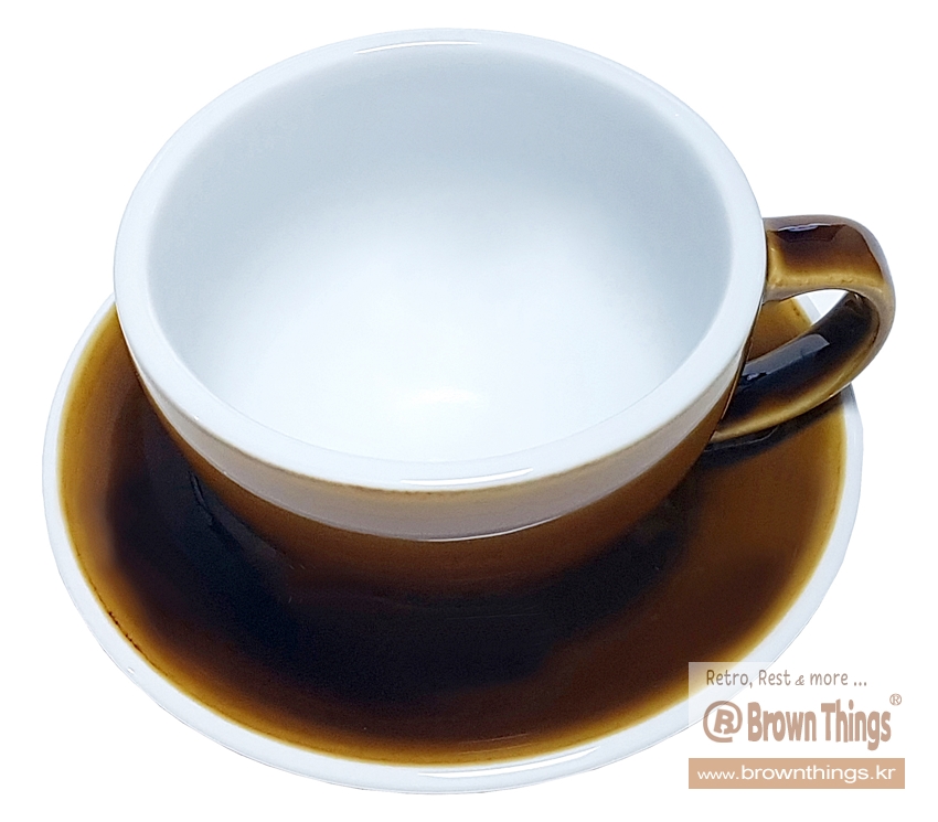 60~80년대 식당의 엽차 물잔, 다방의 쌍화차 찻잔의 미묘한 갈색 색감을 닮은 러브라믹스 에그 커피잔 - 캐러멜 디자인.