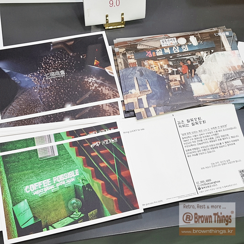 수유리의 재래시장에서 카페 주인장의 부모님이 1984년부터 운영하고 있는 건어물 가게 <칠복상회> 이름을 그대로 따른 커피집.