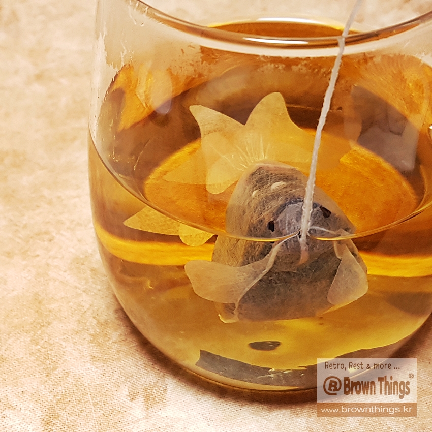 우롱차와 홍차의 나라 대만의 잎차 브랜드 참빌라(CHARM VILLA)에서 디자인한 금붕 모양 티백에 담은 우롱차.