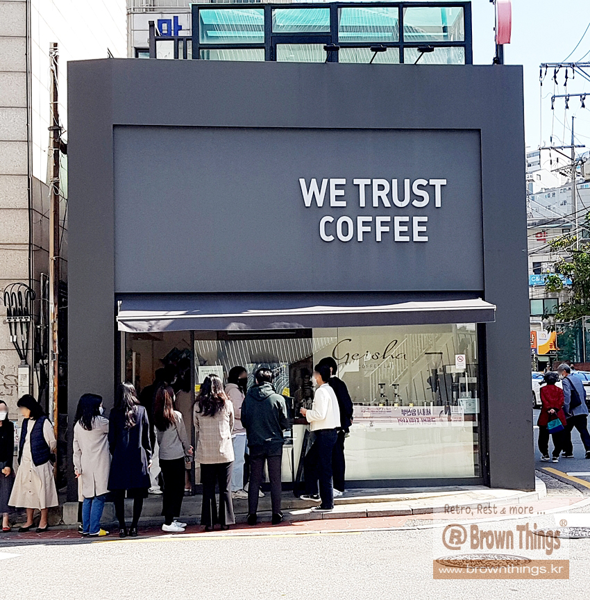 위트러스트 커피 다른 매장들과 달리 게이샤 커피에 역점을 두는 특성으로, 공식 명칭은 위트러스트 커피 게이샤랩.
