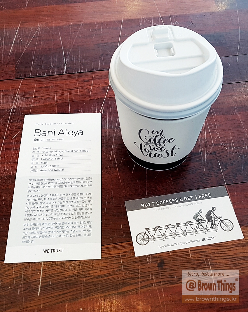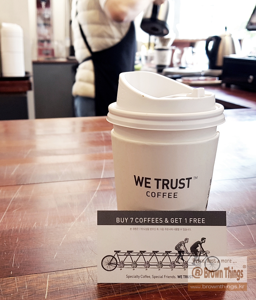 도장을 무려 일곱 개만 찍으면 커피 한 잔 제공하는 카페 목격은 쉼 쉬기 시작한 이래로 위트러스트 커피가 세 번째.