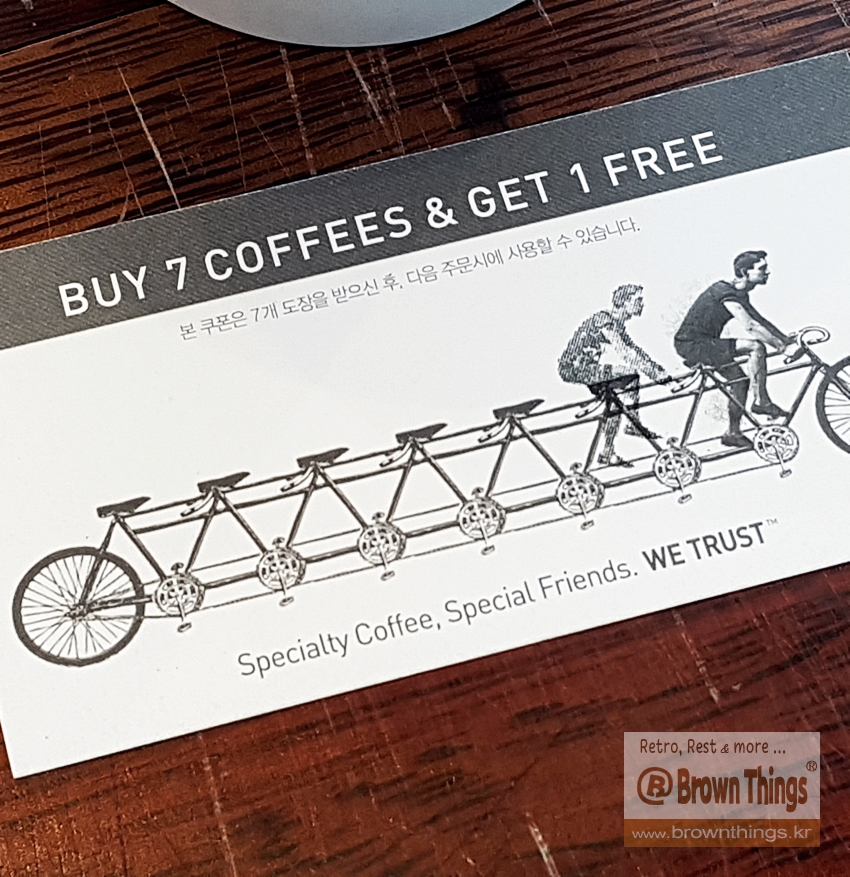 마포역 도화동 카페 위트러스트 커피 게이샤랩은 종이 커피쿠폰에 자그마치 7개 찍으면 커피 한 잔 증정.