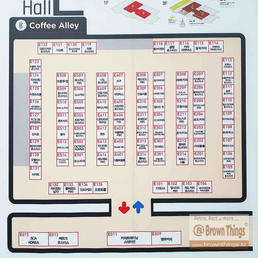 2022 서울카페쇼의 대형 주전시홀 A, B, C, D홀과 분리해서 소형 E홀에 전국의 카페 95곳이 모인 커피 앨리 COFFEE ALLEY.