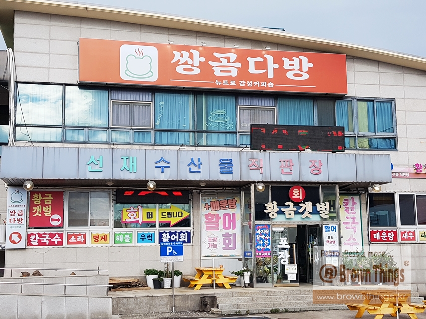 쌍곰다방은 대부도에서 선재대교를 지나 선재도를 밟으면 바로 우측 선재수산물직판장 건물 2층에 위치.
