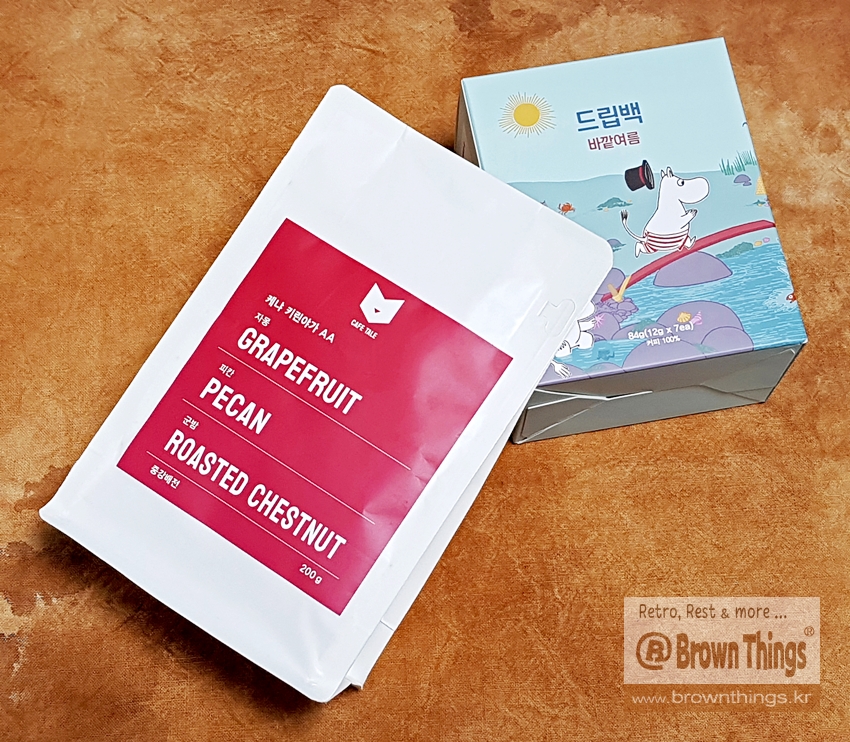 인터넷 서점 알라딘이 만든 커피 브랜드 카페 테일 (CAFE TALE) 원두 케냐 키린야가 AA와 드립백 커피 바깥여름.