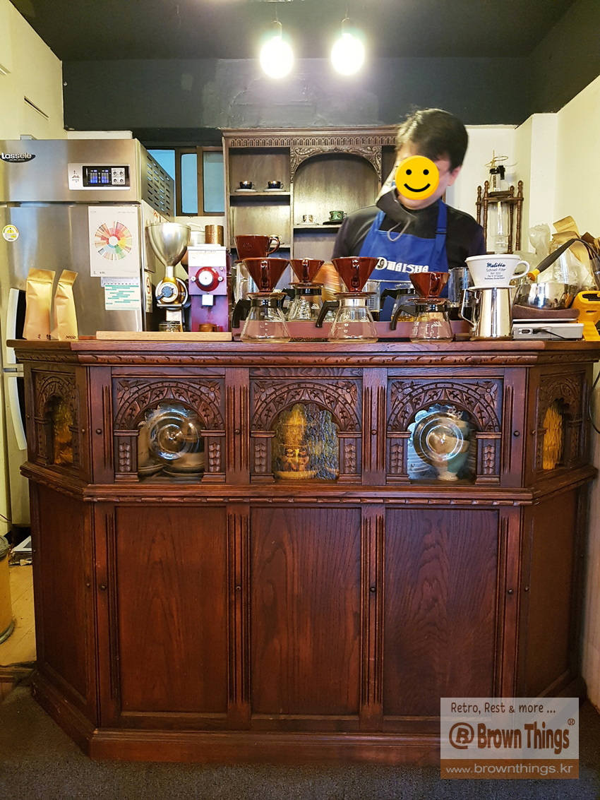 통돌이 로스터로 생두를 볶고, 에스프레소 추출 없이, 종이필터 드립과 융필터 드립한 커피만 내는 커피집.